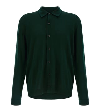 The Roberto Collina Green Wool Cardigan is a masterpiece of understated elegance, crafted for the discerning gentleman. Its rich, verdant hue evokes a sense of timeless sophistication, while the solid pattern exudes a classic charm. Full sleeves provide warmth and comfort, making it perfect for any season. The shirt collar adds a touch of refinement, seamlessly blending casual and formal styles. Made from premium wool, this cardigan promises unparalleled softness and durability, a true staple for the modern man's wardrobe.