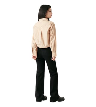 Elevate your denim game with Roem Black Long Mid Rise Bootcut Denim Jeans. Crafted from a premium blend of fabrics for ultimate comfort and durability, these jeans offer a sleek and flattering silhouette. The mid-rise waist and bootcut style create a timeless look that is perfect for any occasion. Whether you aree dressing up or keeping it casual, these jeans will quickly become a wardrobe staple. Say hello to your new favorite pair of jeans.