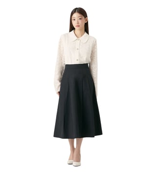 Elevate your wardrobe with the Roem Black Pleated Mid Rise Long Skirt. This versatile skirt combines classic elegance with modern style, featuring a flattering mid-rise waist and chic pleated design. Made from high-quality materials, this skirt offers both comfort and durability, making it perfect for any occasion. Whether you dress it up for a night out or keep it casual for a day at the office, this skirt is sure to become a staple in your closet. Add a touch of sophistication to your look with the Roem Black Pleated Mid Rise Long Skirt.