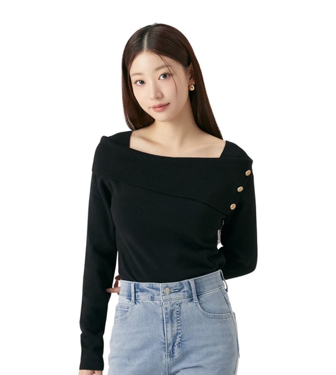 Elevate your wardrobe with the Roem Roem Black Sweater Blouse with Gold Buttons. This chic and versatile piece combines the comfort of a sweater with the sophistication of a blouse, perfect for transitioning from work to weekend effortlessly. The elegant gold buttons add a touch of glamour, while the black color makes it a timeless staple in your closet. Stay stylish and comfortable all day long with this must-have piece that exudes both class and charm.