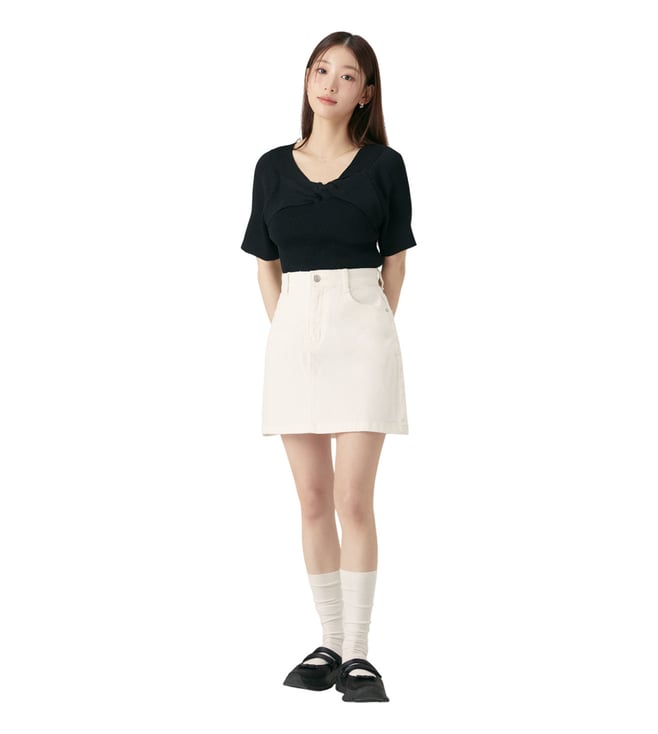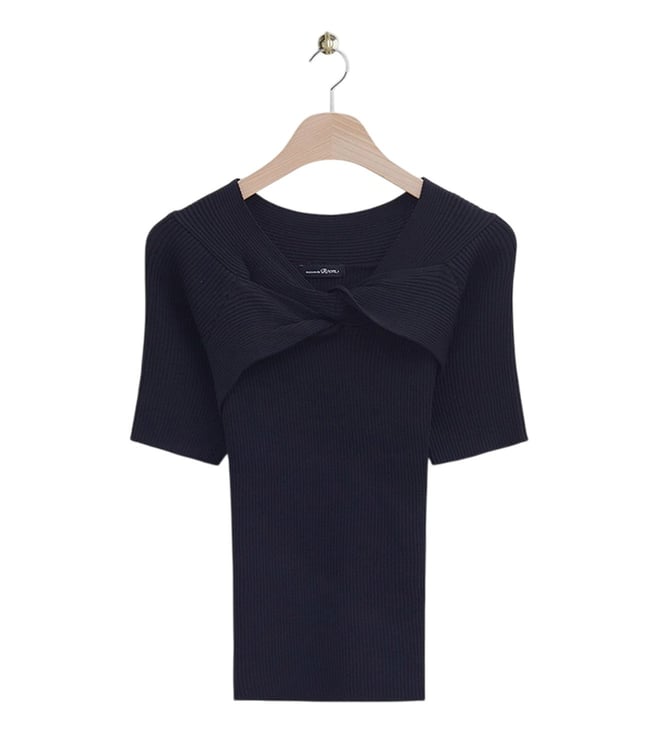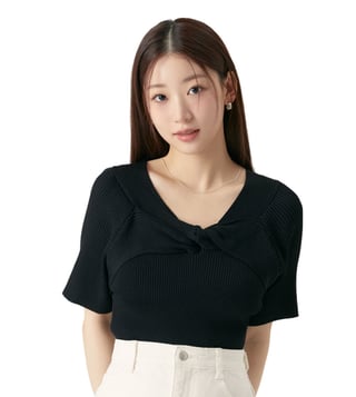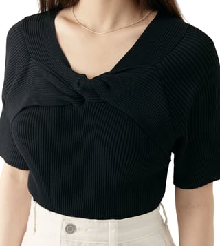 Roem Black Twisted Regular Fit Ribbed Sweater Blouse