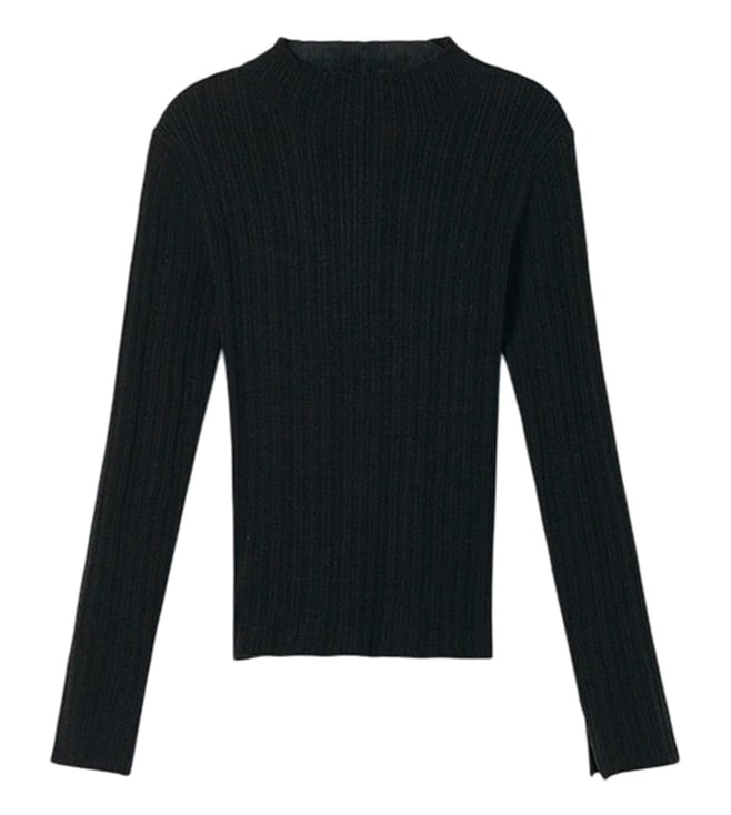 Elevate your wardrobe with the stylish Roem Black Textured Sweater Top. This versatile piece features a chic black hue and a textured knit design that adds a touch of sophistication to any outfit. The soft fabric ensures a comfortable fit, while the flattering silhouette effortlessly enhances your figure. Whether you're heading to the office or a night out, this sweater top is the perfect choice for a polished and on-trend look. Upgrade your closet with this must-have piece that seamlessly transitions from day to night.