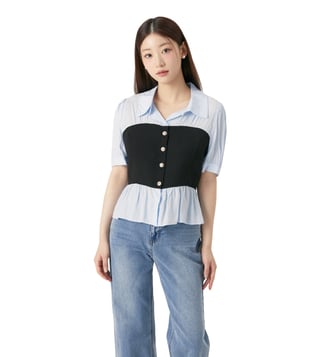 Roem Blue Bustier Matching Regular Fit Top