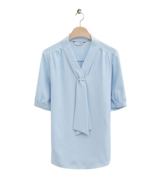 Elevate your everyday style with the Roem blue regular fit top. Crafted from high-quality polyester, this top features three-quarter sleeves and a chic bow-tie neck detail, adding a touch of sophistication to your daily wardrobe. The comfortable regular fit ensures all-day wearability, while the versatile design makes it easy to dress up or down for any occasion. Stay effortlessly stylish and comfortable with this must-have top.
