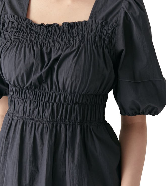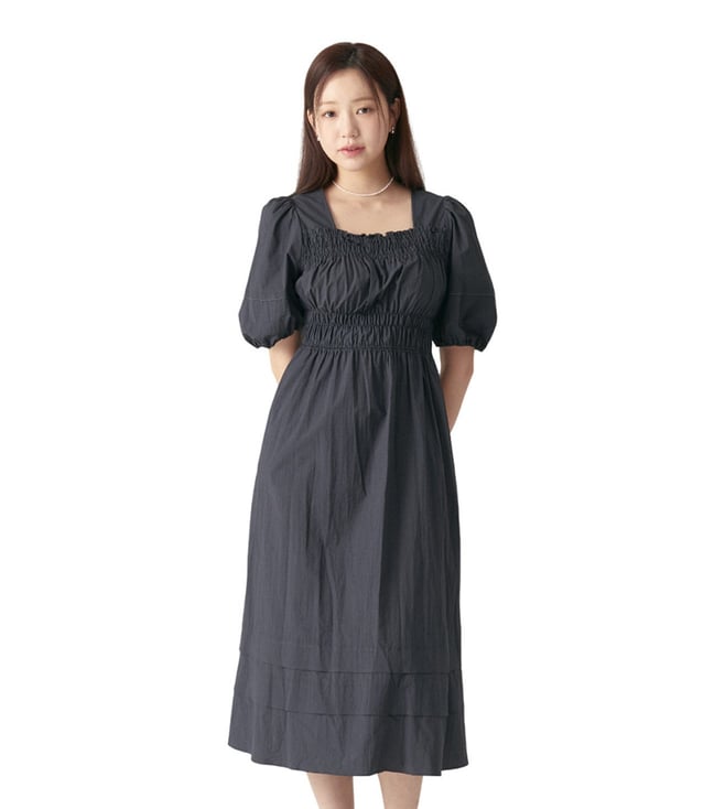 Roem Charcoal Black Puff Sleeve Regular Fit Midi Dress
