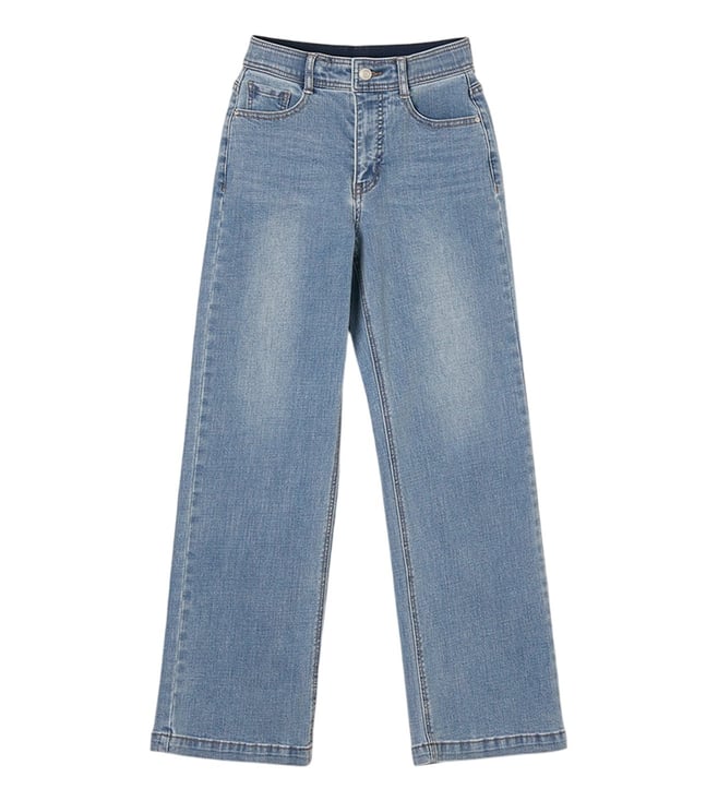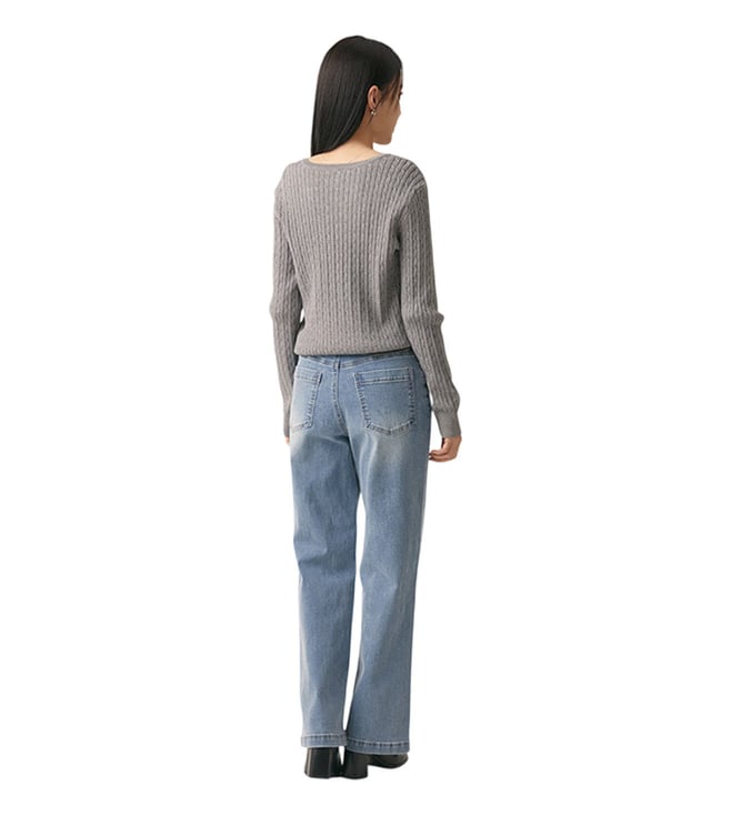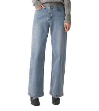 Roem Indigo Mid Rise Straight Fit Bootcut Denim Jeans