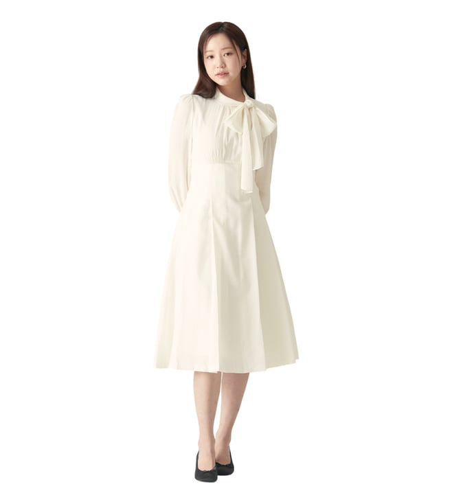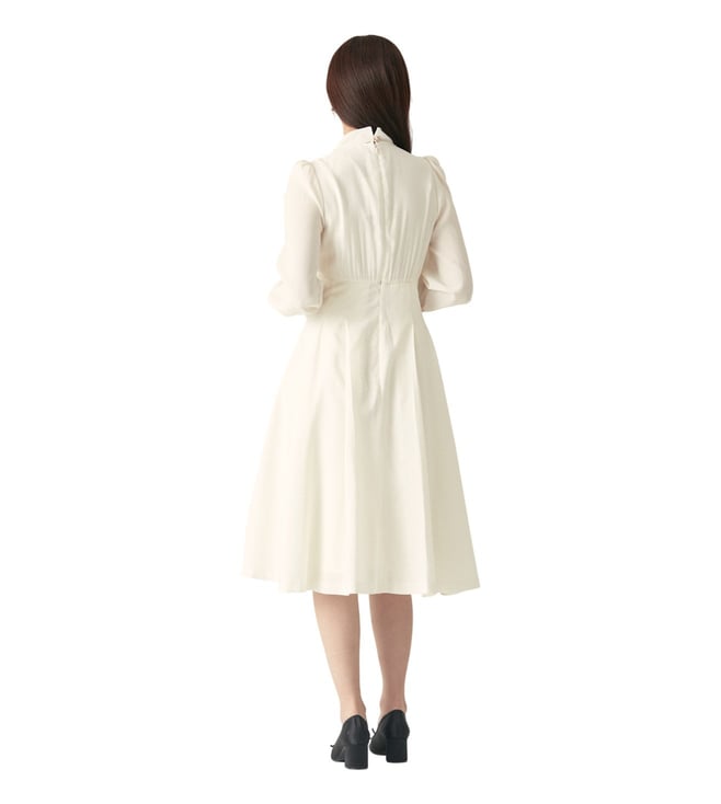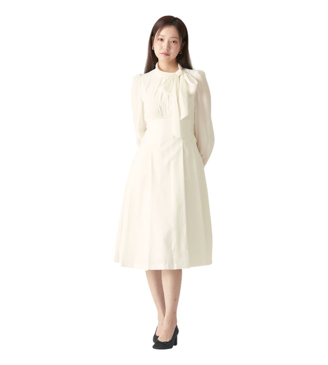 Elevate your wardrobe with the Roem Ivory Regular Fit Midi Dress. This versatile piece combines classic elegance with modern sophistication, making it the perfect choice for any occasion. Crafted from high-quality materials, this dress offers a comfortable regular fit that flatters every body shape. The midi length adds a touch of chic style, while the timeless ivory color ensures effortless coordination with your favorite accessories. Whether you aree dressing up for a special event or adding a touch of glamour to your everyday look.