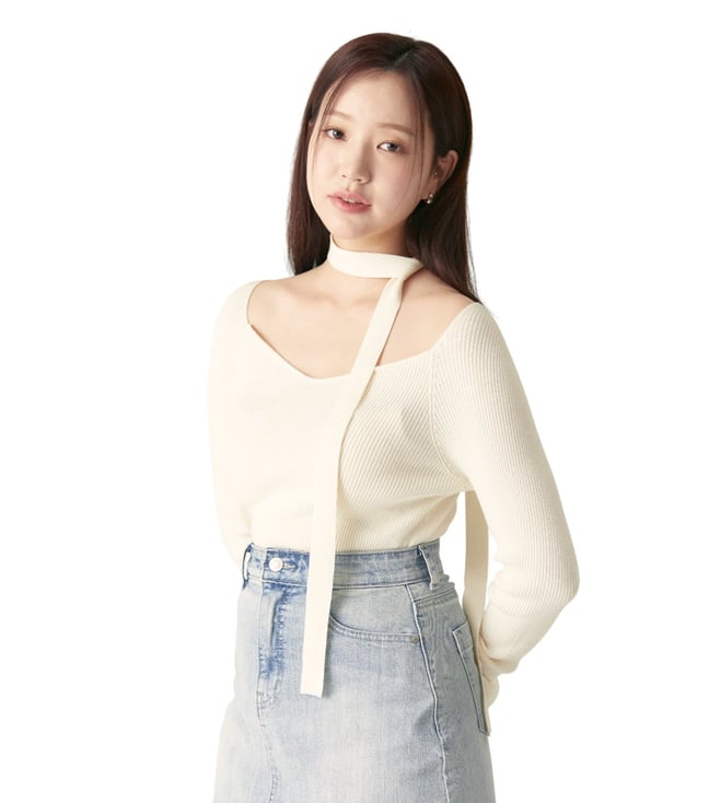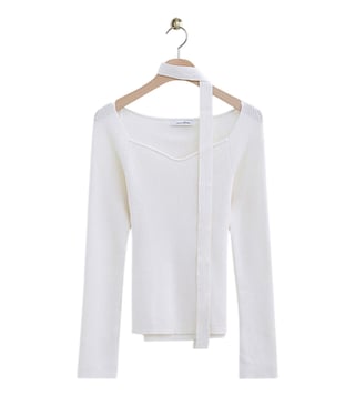 Elevate your everyday style with the Roem Ivory Regular Fit Sweater Top. Crafted from luxurious fabric, this top offers a perfect blend of comfort and sophistication. The versatile design and flattering fit make it easy to dress up or down for any occasion. Whether you're heading to the office or meeting friends for brunch, this sweater top will keep you looking chic and feeling cozy all day long. Upgrade your wardrobe with this timeless piece that effortlessly combines style and comfort.