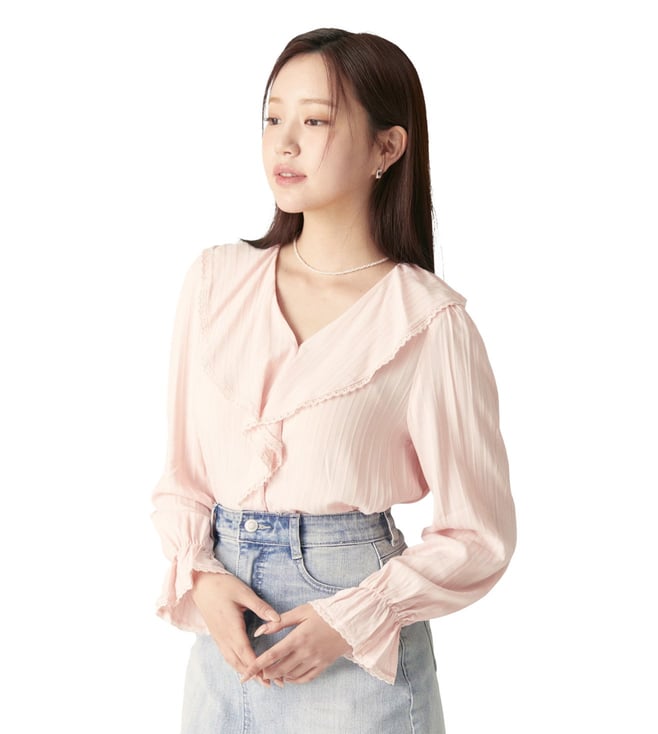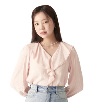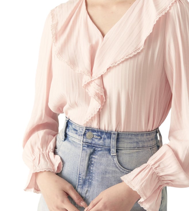 Elevate your everyday look with our Roem pink ruffle regular fit top. Made from luxurious rayon fabric, this top features long sleeves, a flattering v-neckline, and a chic ruffle detail. Perfect for daily wear, this top combines comfort and style effortlessly. Whether you aree heading to work or meeting friends for brunch, this top will keep you looking effortlessly stylish. Add a touch of feminine charm to your wardrobe with our Roem pink ruffle regular fit top.