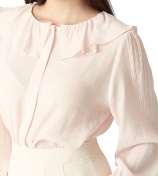 Elevate your everyday wardrobe with the Roem pink wide ruffle regular fit top. Crafted from soft rayon fabric, this top features long sleeves, a round neck, and a stylish wide ruffle detail that adds a touch of femininity to your look. Perfect for daily wear, this top offers both comfort and style, making it a versatile piece for any occasion. Whether you aree heading to work or out for a casual outing, this top will effortlessly elevate your outfit. Embrace effortless chic with the Roem pink wide ruffle regular fit top.