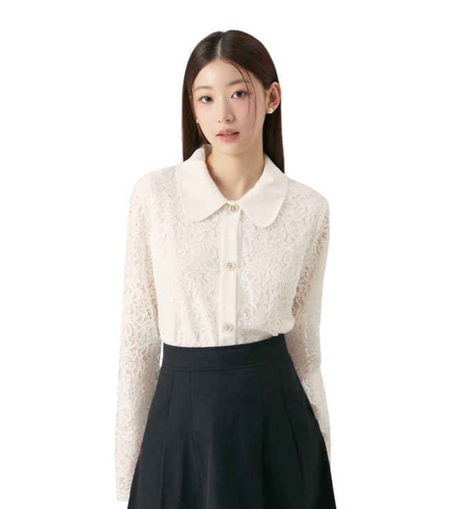 Roem White Lace Embroidered Regular Fit Shirt