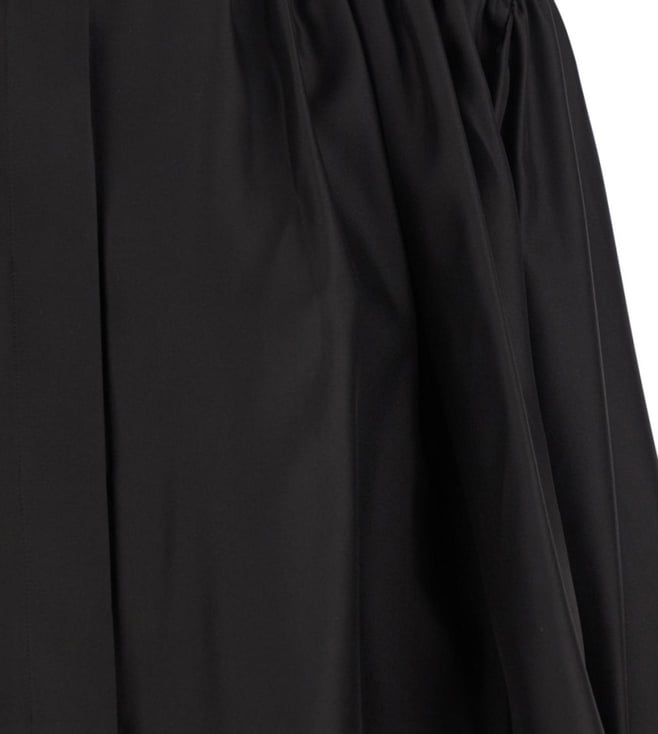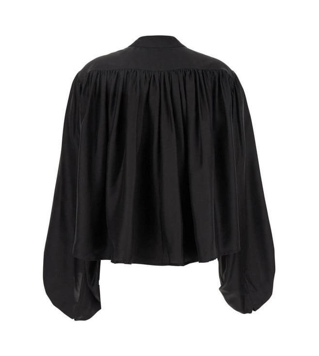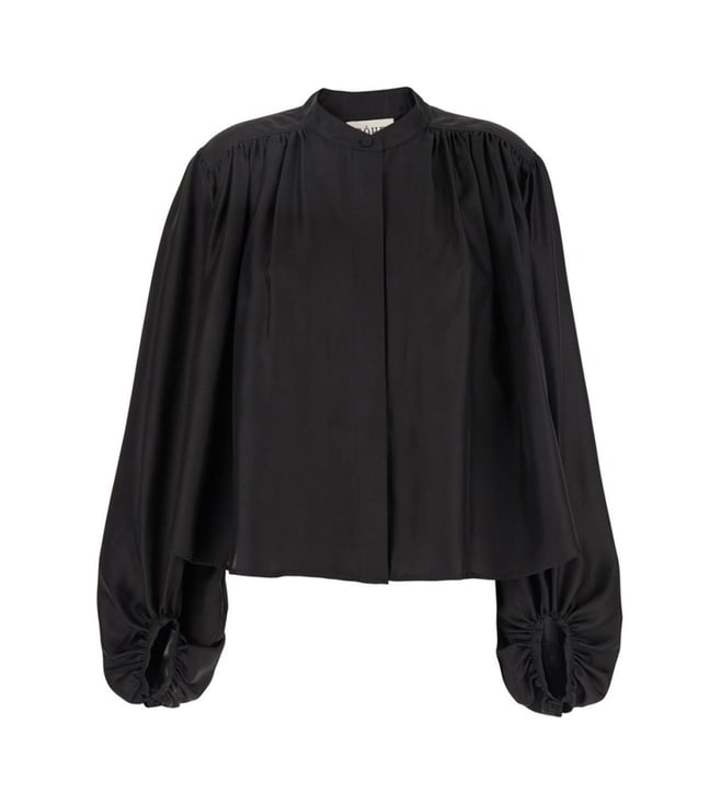 The Rohe Black Top with Mandarin Collar is a sophisticated blend of elegance and comfort, crafted from luxurious 100% silk. Its relaxed fit drapes effortlessly, offering a chic silhouette that flatters every figure. The deep black hue exudes timeless allure, while the subtle pattern adds a touch of intrigue. Designed for the modern woman, this top features a seamless closure, ensuring a sleek finish. Perfect for any occasion, it embodies a harmonious balance of style and grace.
