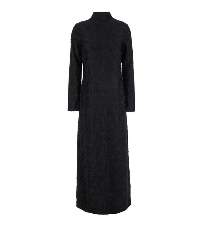 Black Textu Lace Turtleneck Woven Design Slim Fit Dress