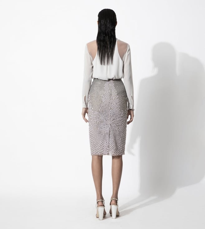 Rohit Gandhi Rahul Khanna Silver White Tonal Applique Work Top