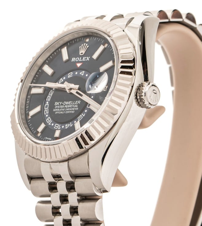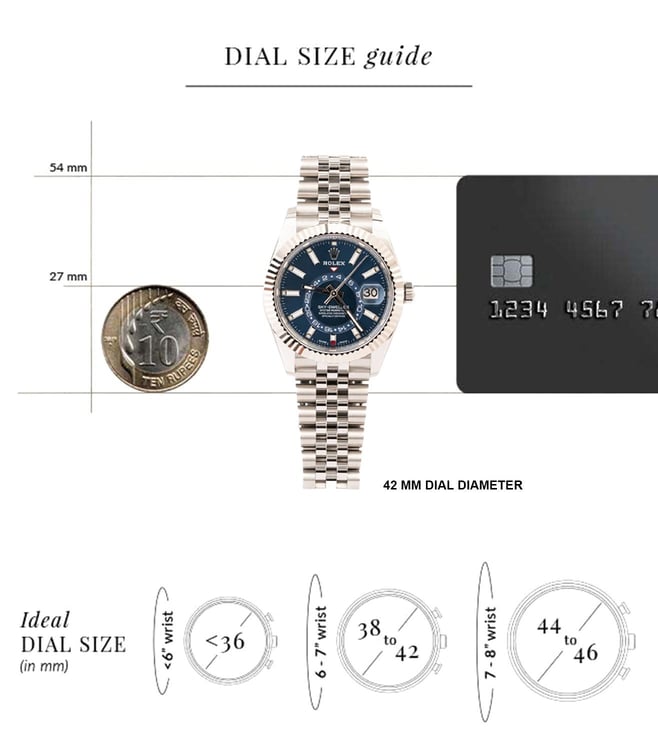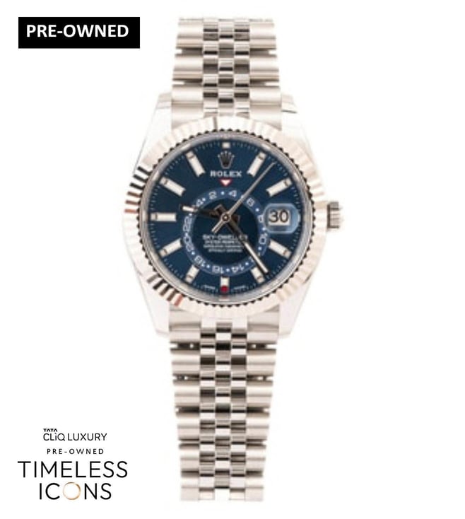 Add a perfect finishing touch to your look with this men's analog watch from Rolex. The blue round dial is protected by a sapphire glass. It has a crown for time adjustment. The steel strap comes in a silver hue that further elevates the look of the timekeeper. Besides, it is completed with a fold-over clasp to ensure a secure fit on the wrist. The dial diameter of this watch is 42 mm. This is a used product sold by sellers on as-is basis and not a packaged commodity and may not have warranty.