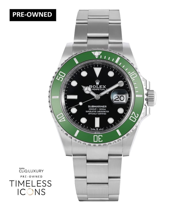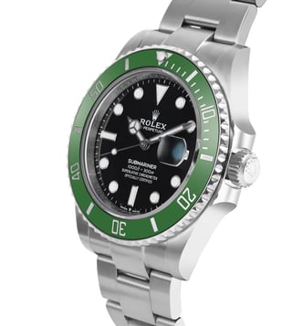 The Rolex Submariner with Green Bezel and Black Dial is a bold expression of Rolex s diving heritage. Its 41mm Oystersteel case and signature green Cerachrom bezel encircle a deep black dial with luminous hour markers for perfect underwater legibility. Driven by the Caliber 3235, it offers exceptional precision, a 70-hour power reserve. The purchase year for this watch is 2023, and the warranty card and the brand watch box are available. Mint Condition. [?]