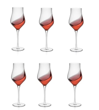 Experience the best enjoyment with the 6-piece Rose champagne glass set, designed for optimal pleasure. Crafted to the highest standard from fine lead-free crystal, this glass presents a stunningly simple silhouette with a rounded chalice pinched in the middle and flared at the rim. In this design, subtle rose notes are released, allowing the entire range of rose wines to shine in all their beauty.