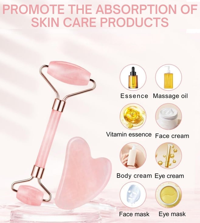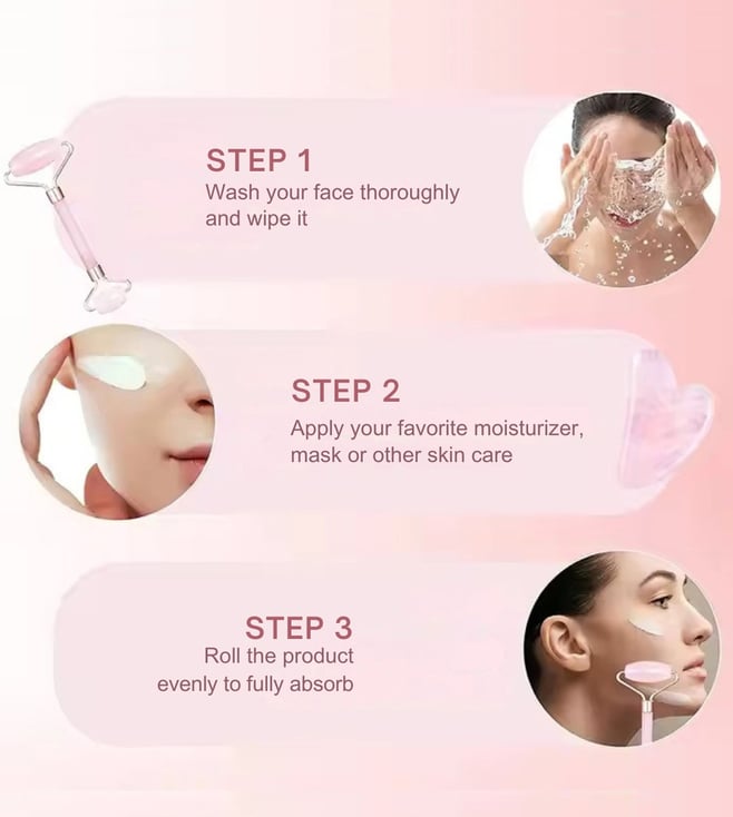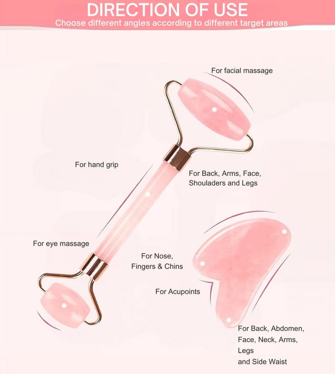 Elevate your skincare routine with the Signaxo Rose Jade Roller & Gua Sha Tool Kit, designed to naturally enhance your skin s glow and promote a healthy, youthful appearance. Crafted from genuine rose quartz stone, this elegant facial massage set helps improve circulation, reduce puffiness, and support lymphatic drainage. while the gua sha tool is ideal for contouring and lifting. Whether used alone or with your favorite serum or oil, this time-honored beauty tool brings calm, balance, and brightness to your skin with every use.