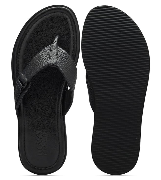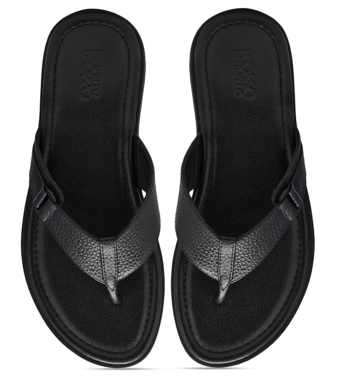 Stylish black leather slipper by Rosso Brunello, designed for men. A perfect addition to your wardrobe, these slippers combine elegance with comfort. Disclaimer: All other items in the image are only for display purposes and will not be a part of the delivery content. Product colour may slightly vary due to photographic lighting sources. Country of Origin - India.