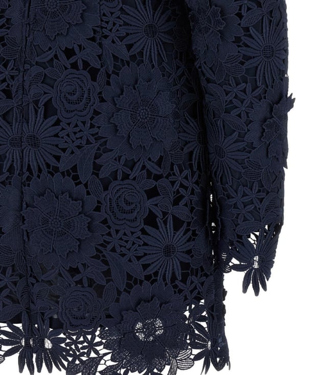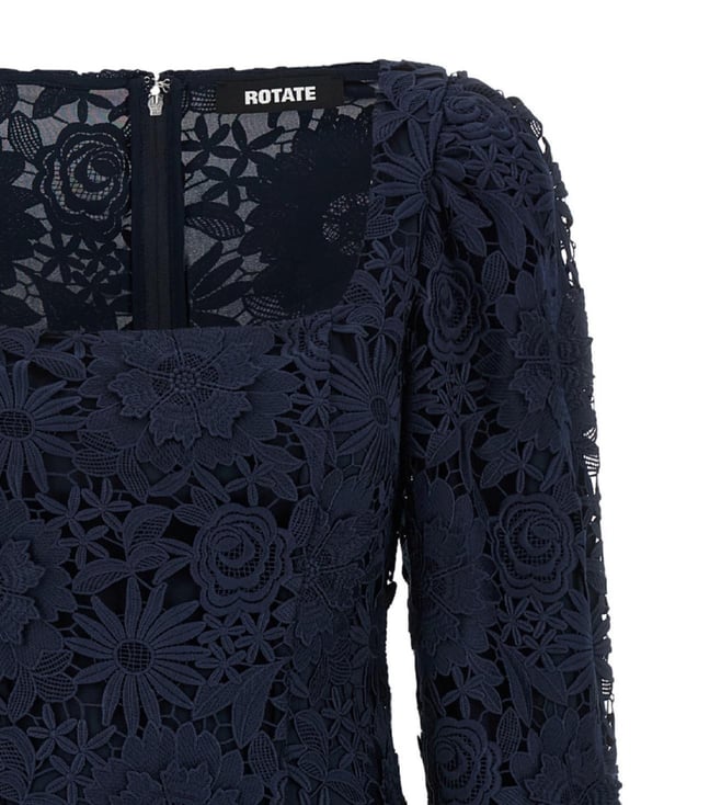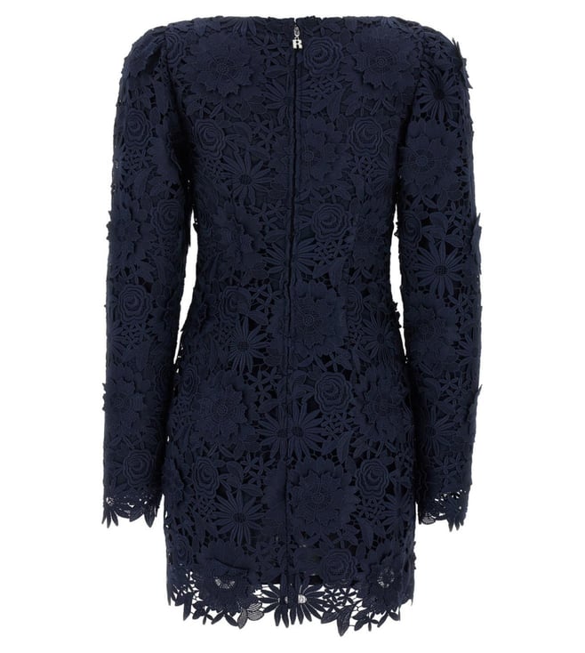 Rotate Birger Christensen Blue 3D Lace Ls Mini Floral Dress
