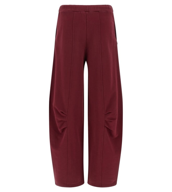 Elevate your wardrobe with the Rotate Birger Christensen Maroon Straight Fit Trackpants. Designed with terry back terry joggers with high waist, straight leg with side pleats on the knee, front logo patch, adjustable drawstring elastic at the waist, pockets. these trousers combine comfort and sophistication for everyday wear. Products purchased from Darveys are supported exclusively by the warranty/exchange policies of Darveys and its partner boutiques. Brand owners and their channel partners are not responsible for exchange/warranty services for items purchased through Darveys.