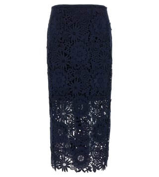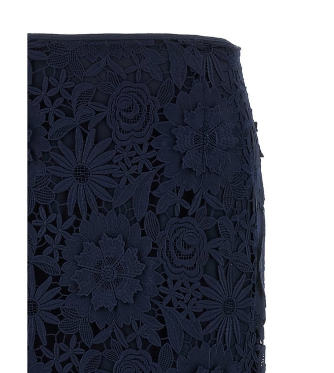 Elevate your wardrobe with the Rotate Birger Christensen Navy skirt. Designed with lace openwork lace midi skirt with sheath skirt and back zip and hook closure. true to size fit, these trousers combine comfort and sophistication for everyday wear. Products purchased from Darveys are supported exclusively by the warranty/exchange policies of Darveys and its partner boutiques. Brand owners and their channel partners are not responsible for exchange/warranty services for items purchased through Darveys.