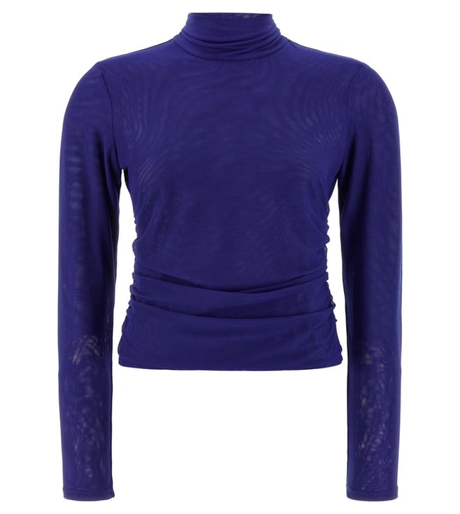 Blue Mesh Rouched Sweater
