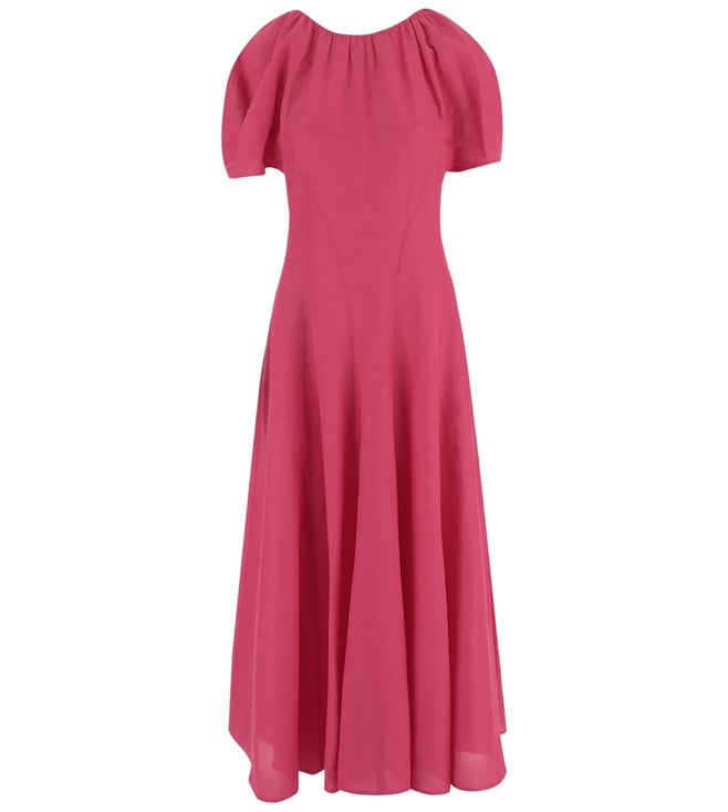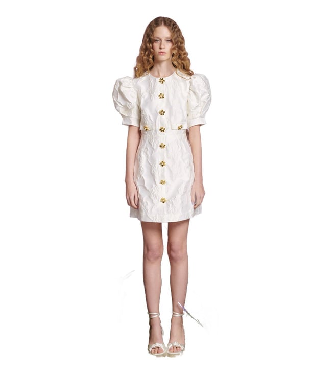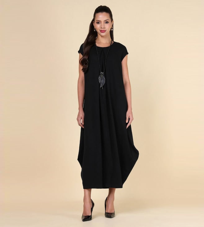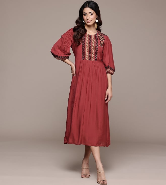 Women Beige Solid Pure Cotton Round Neck Straight Dress