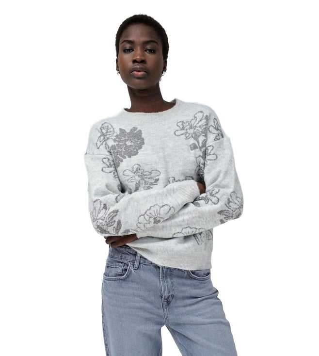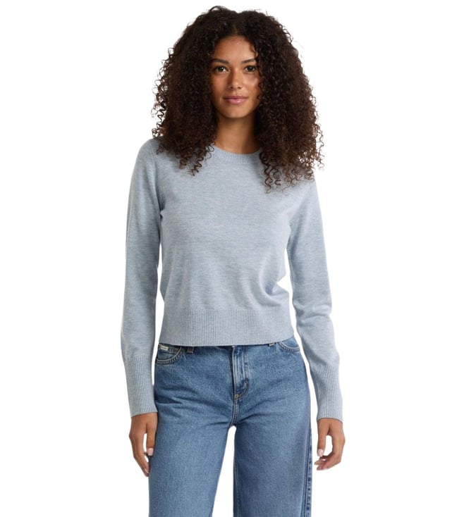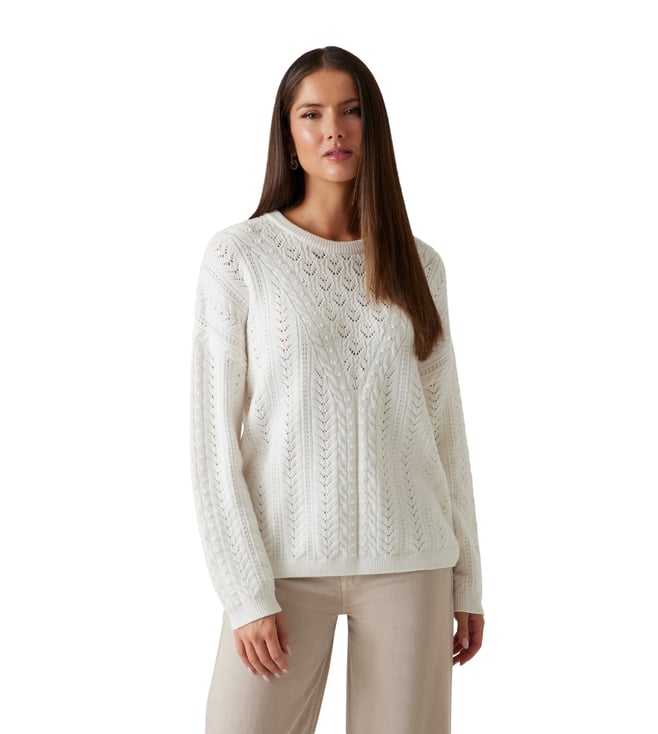 Dove White WoCable Knitted Round Neck Long Sleeves Pullover