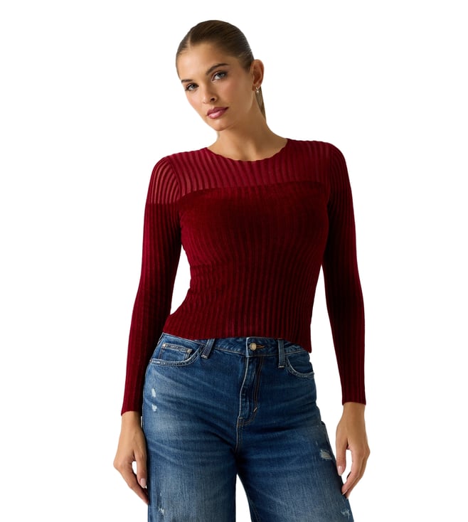 Siren Red Multi WoTextured Round Neck Long Sleeves Pullover