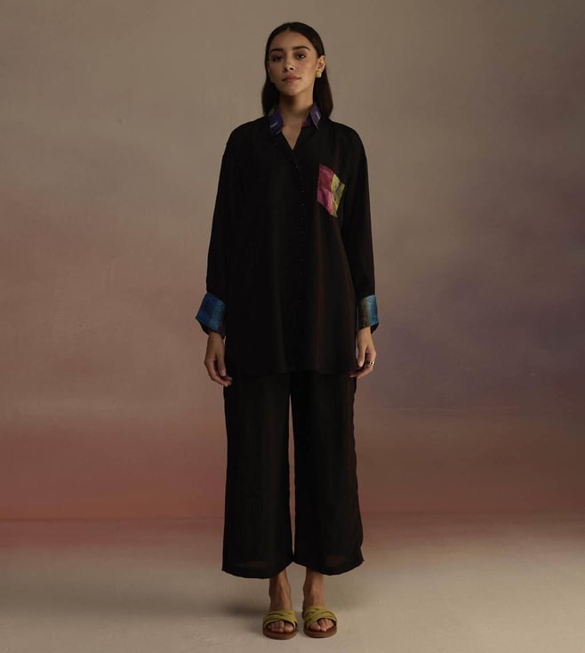 The Attico shirt, crafted from habutai silk, features a delicate hand-sketched paper piecing print on the collar, front pocket, and cuffs. It has dainty embroidered details across the front placket. The shirt can be matched with Attico pants Disclaimer: All Other Items In The Image Are Only For Display Purposes And Will Not Be A Part Of The Delivery Content. Product Colour May Slightly Vary Due To Photographic Lighting Sources. Country Of Origin - India.