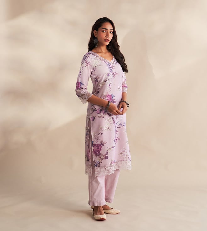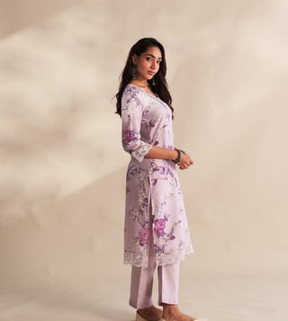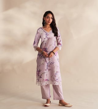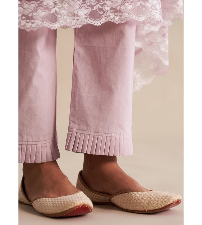 The pants are perfect to pair with this printed dainty kurta. The little frill detailing just accentuates the already beautiful print! Disclaimer: All other items in the image are only for display purposes and will not be a part of the delivery content. Product colour may slightly vary due to photographic lighting sources. Country of Origin - India.