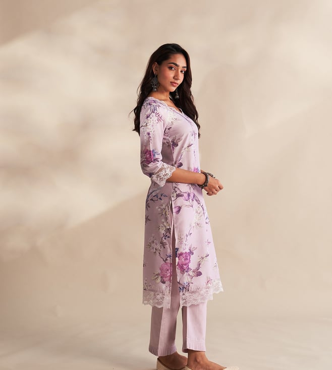 Roze Lilac Cotton Comfort Fit Solid Casual Pant