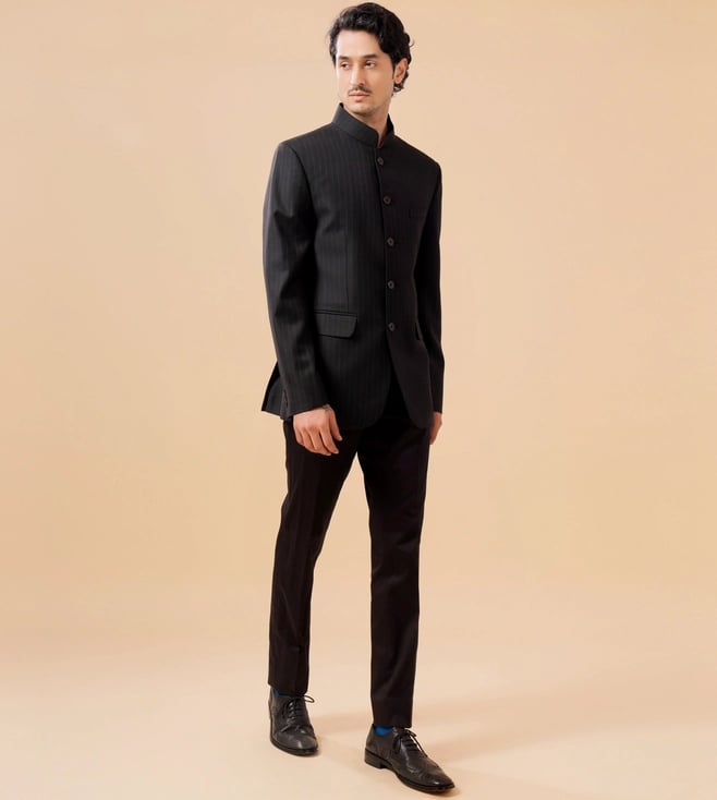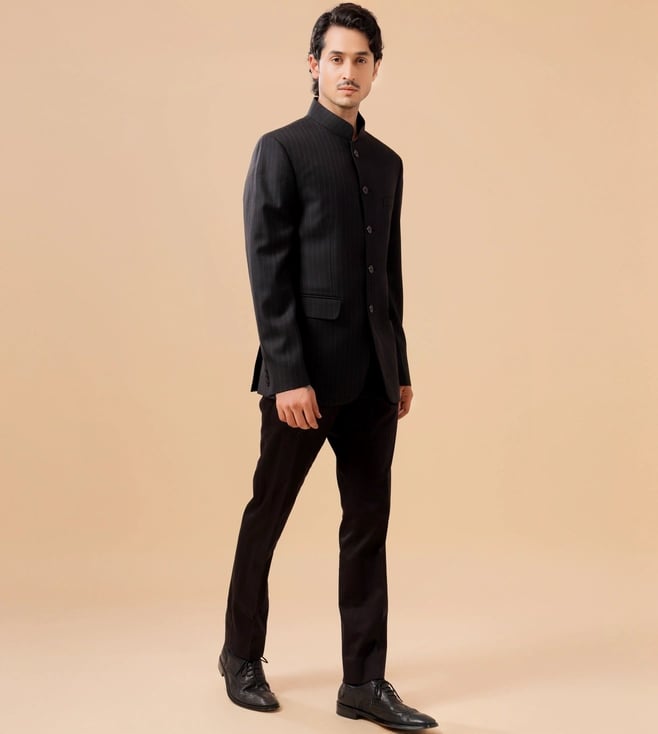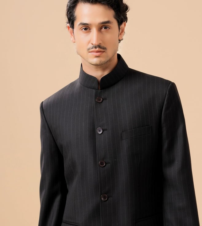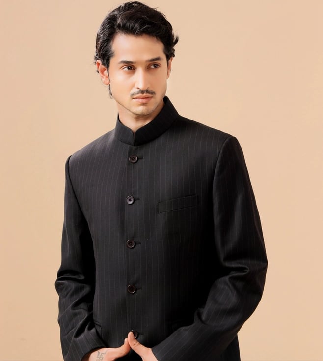 RR Blue by Raghavendra Rathore Black Classic Bandhgala With Contrast Pin Stripe