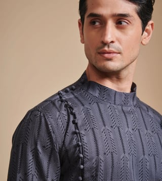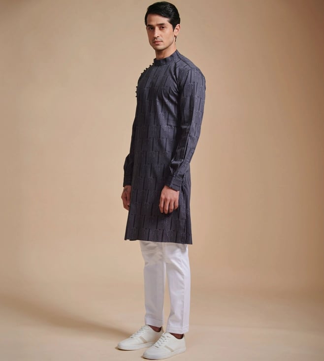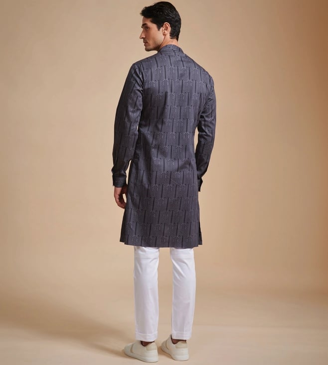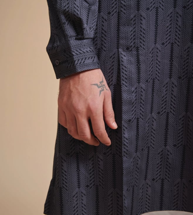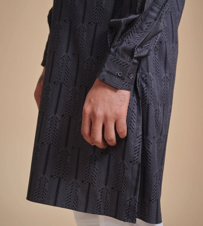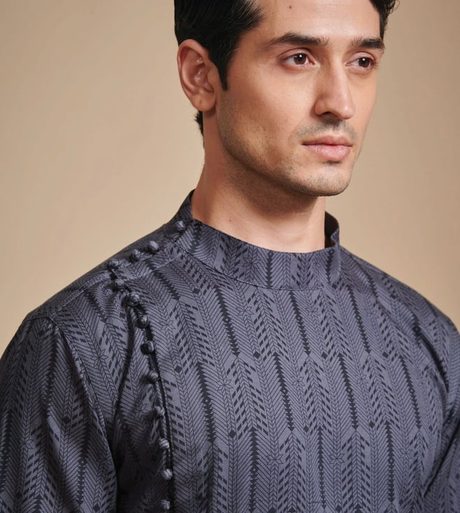 RR Blue by Raghavendra Rathore Grey & Black Print The Loop Button Cross Over Kurta