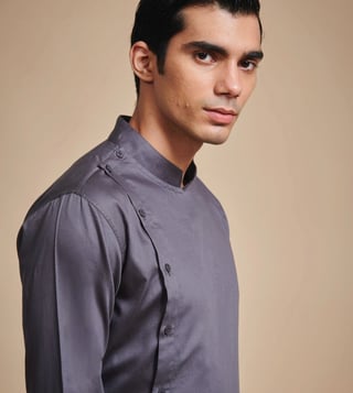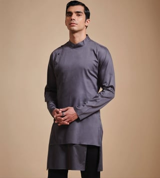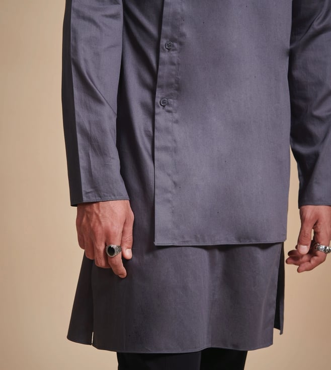 RR Blue by Raghavendra Rathore Grey The Godet Shirt Kurta