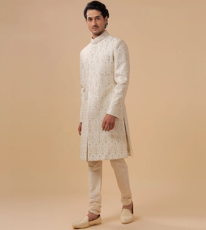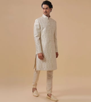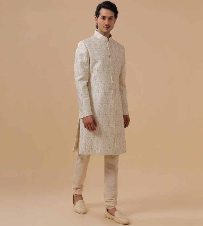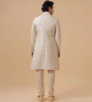 RR Blue by Raghavendra Rathore Off White Silk Achkan