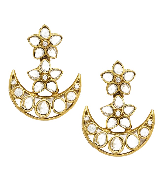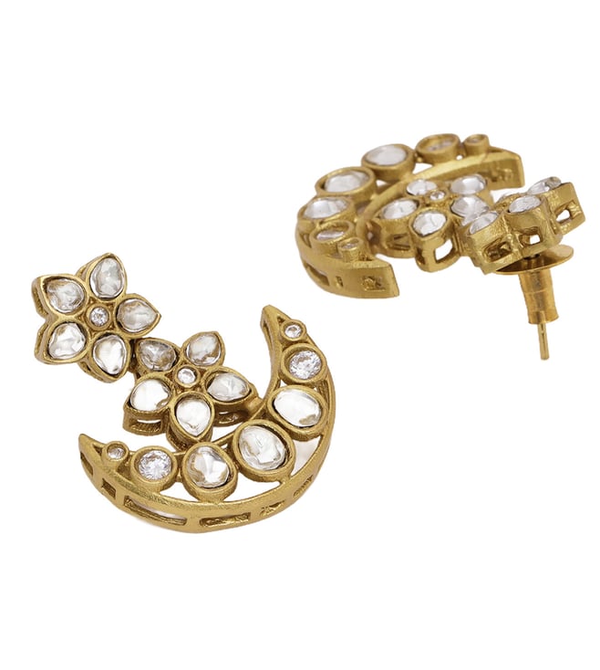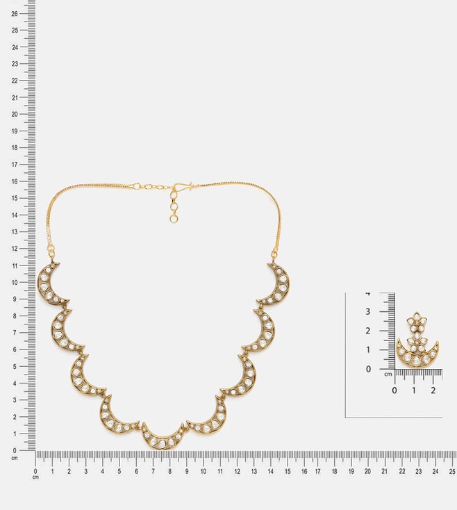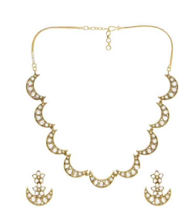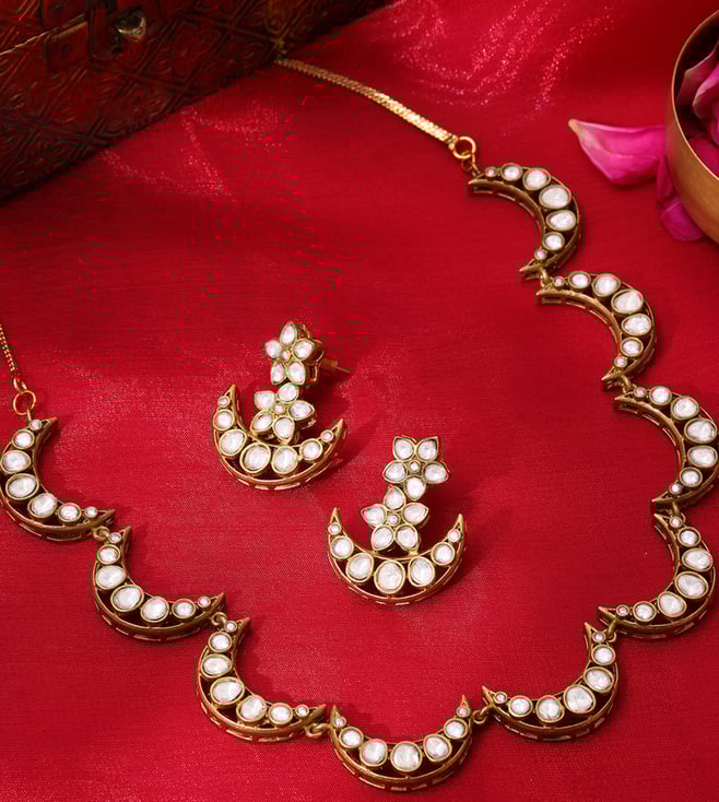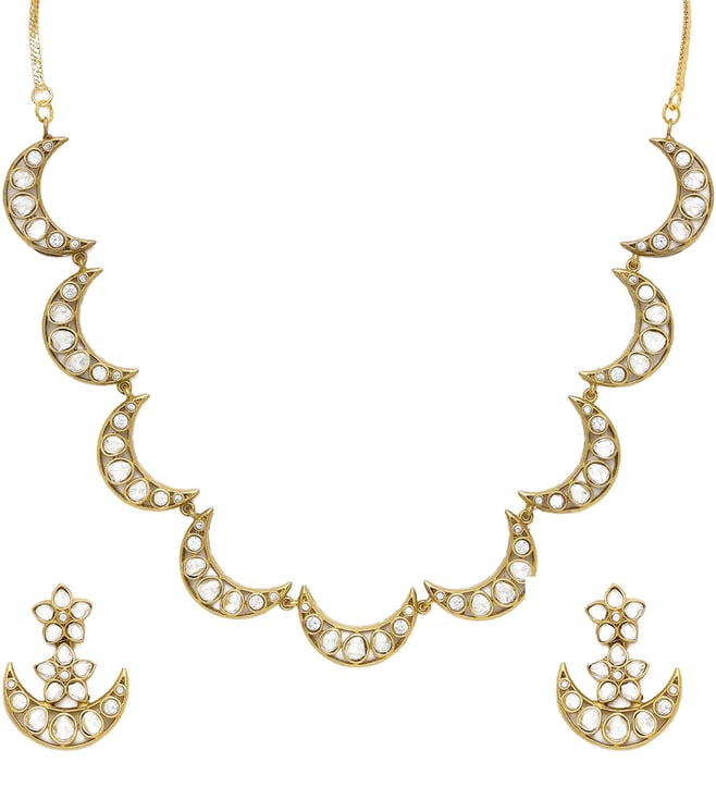 Ruby Raang Gold Half Moon Kundan Necklace with Earrings