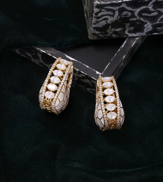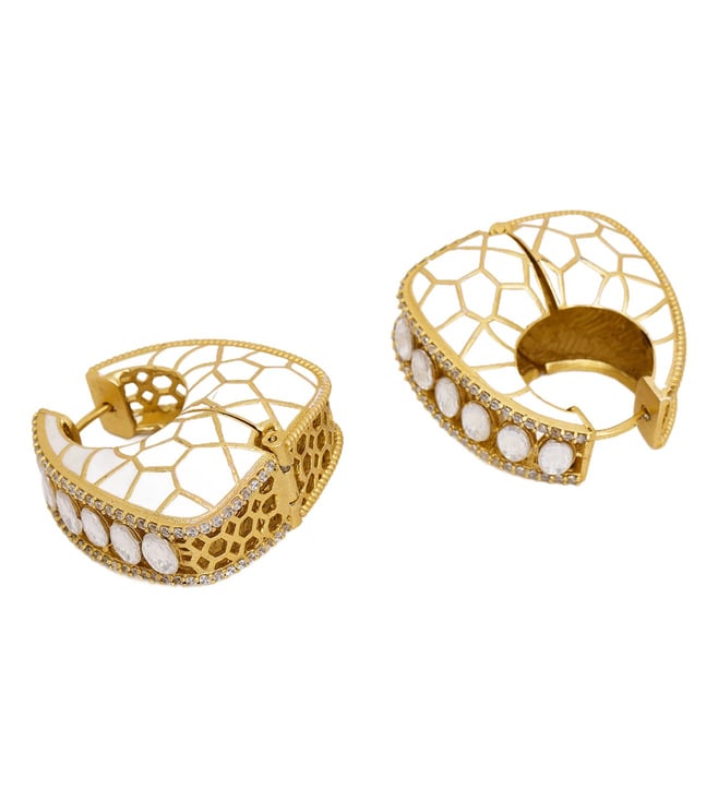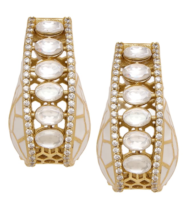 Ruby Raang Gold White Kundan Loops Hoop Earring