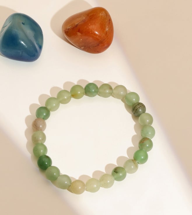 Refresh your style with Ruby Raang¿s Green Avanturine Beads Elastic Bracelet, featuring Green Aventurine stones known for attracting luck, growth, and emotional balance. The smooth, polished beads showcase soothing green tones that evoke nature and serenity, making this bracelet both calming and effortlessly chic. Strung on a high-quality elastic cord, it ensures a comfortable, flexible fit for all-day wear. Whether worn alone or stacked, it adds a touch of mindful elegance to any look. A harmonious blend of wellness and beauty.