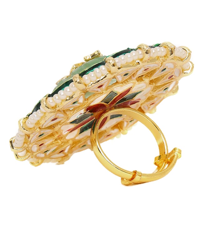 Ruby Raang Green Kundan Cocktail Ring