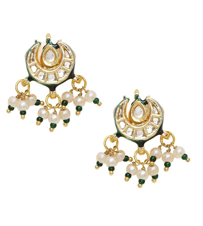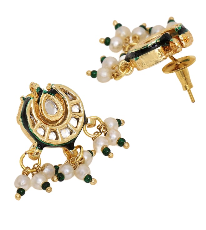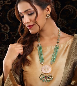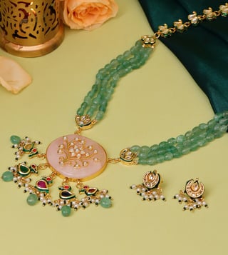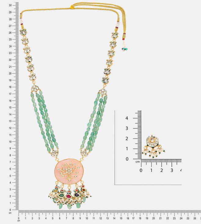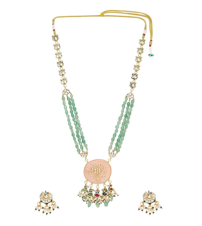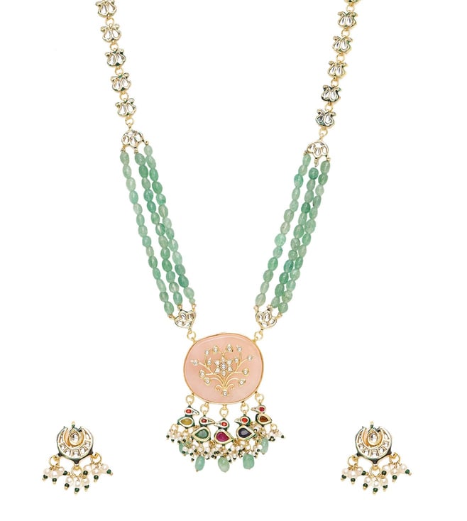 Ruby Raang Green Long Kundan & Stonework Necklace with Earrings