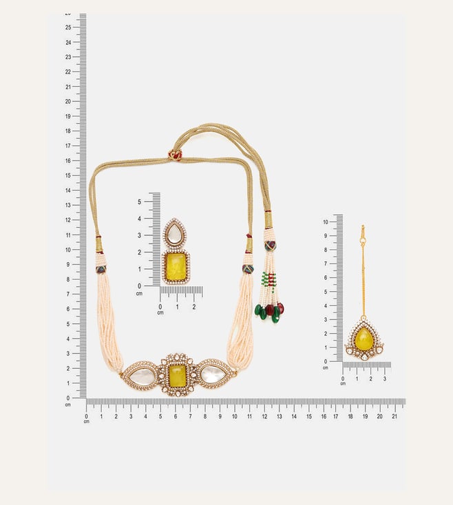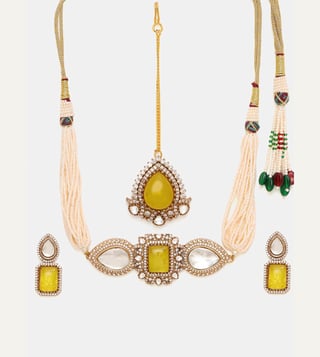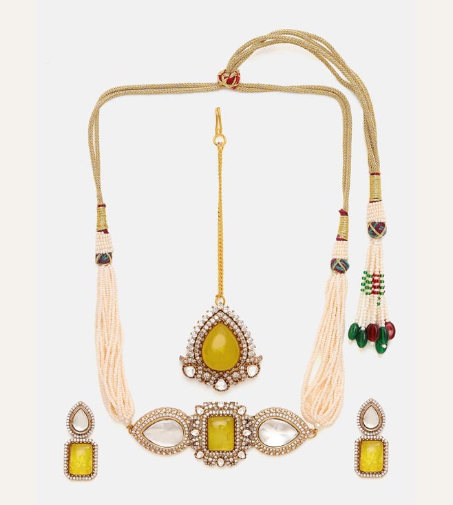 Ruby Raang Green Stone And Mossanite Necklace With Matching Earrings And Maang Tikka