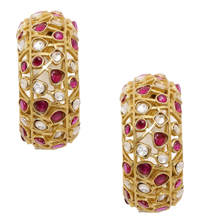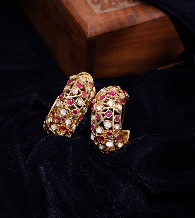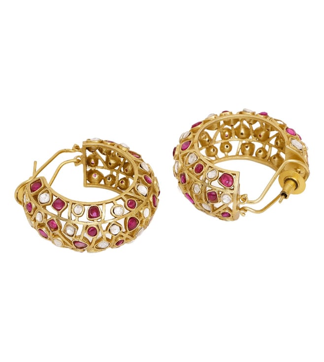 Ruby Raang Maroon Round Kundan Loops Hoop Earring