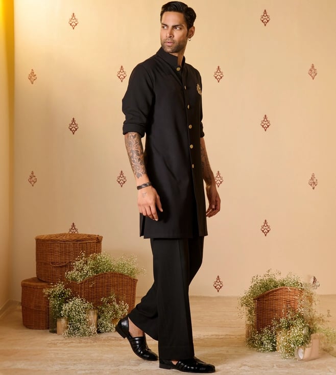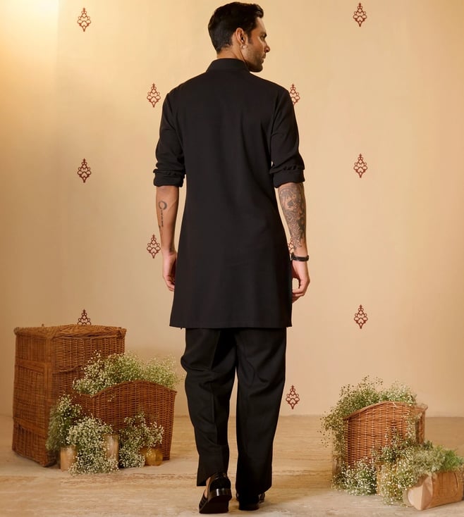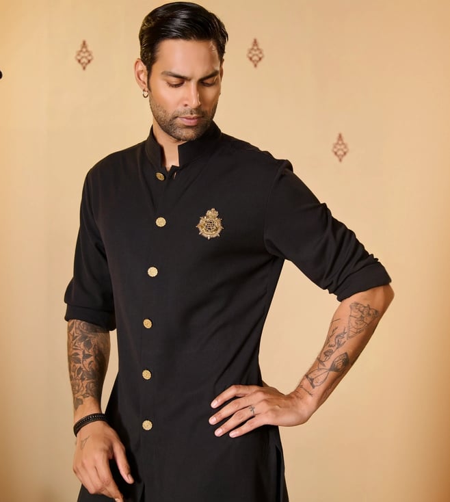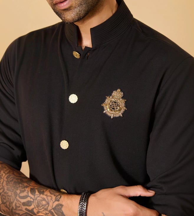 S&N Shantnu NikhilS&N by Shantnu Nikhil Black Crested Kurta with Anna Buttons