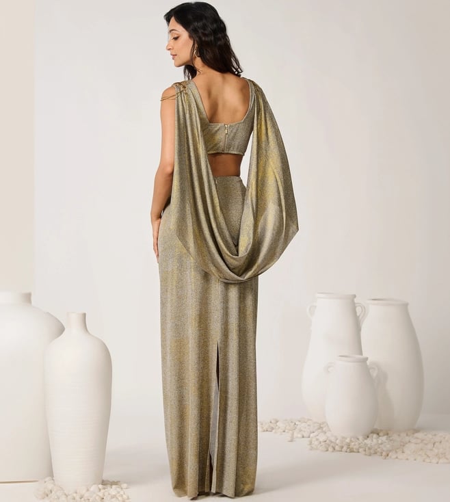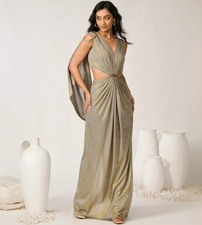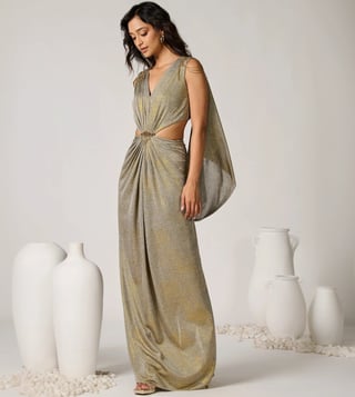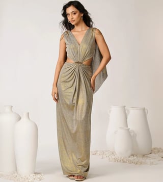 S&N Shantnu NikhilS&N by Shantnu Nikhil Gold Foil Cape Drape Gown