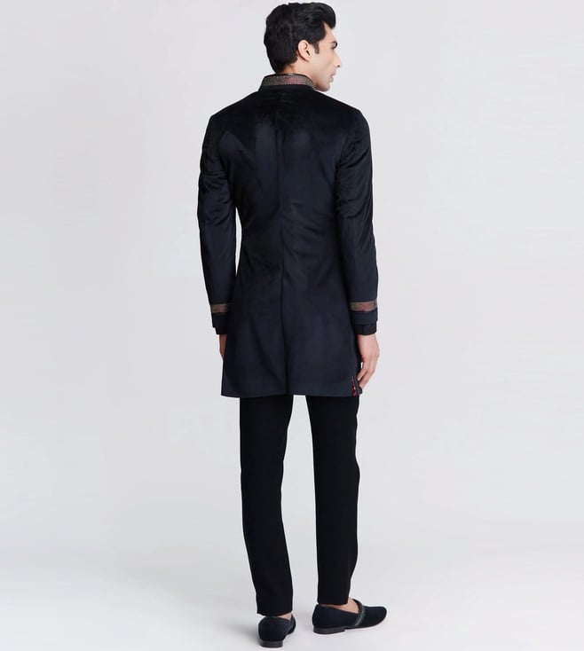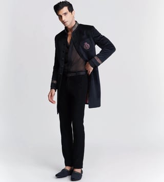 S&N Shantnu Nikhil Black Dazzle Crested Sherwani