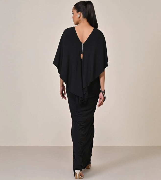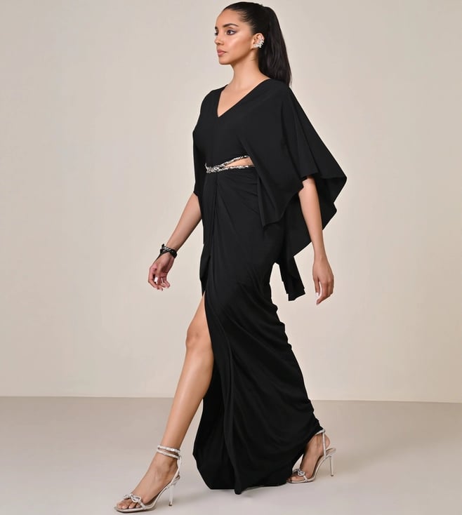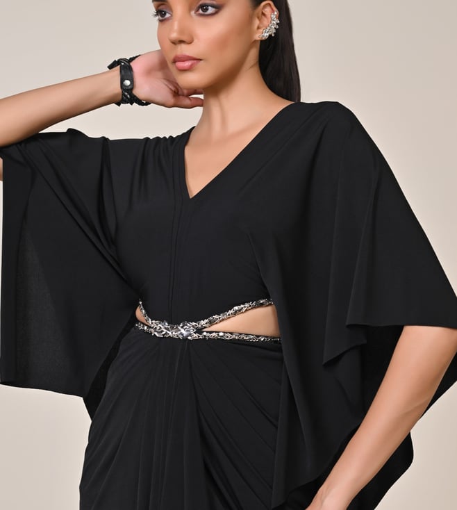 S&N Shantnu Nikhil Black Draped Gown With Waist Cut-Out