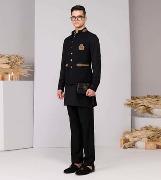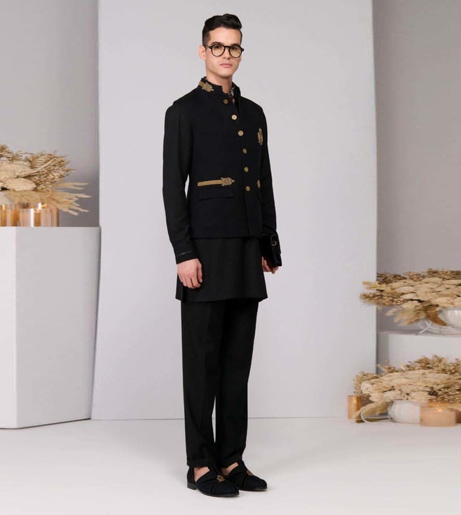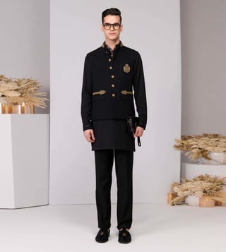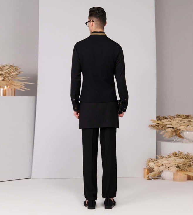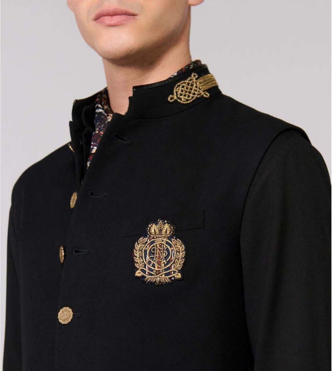 S&N Shantnu Nikhil Black Slim Fit Embroiderey Ethnic Jacket