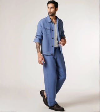 Exhibit a vibe of urbanity with this shacket. It is crafted with care using linen. Disclaimer: All other items in the image are only for display purposes and will not be a part of the delivery content. Product colour may slightly vary due to photographic lighting sources. Country of Origin - India.